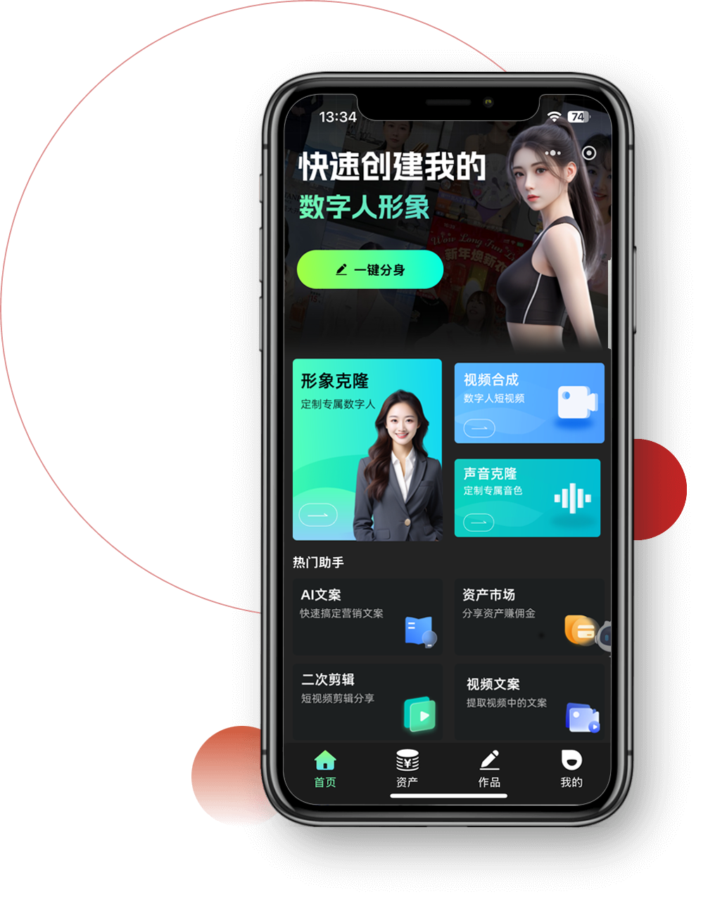 网红秀是一款AI数字人,可创建并训练Ai网红数字人,支持AI数字人录播、二次剪辑、声音形象克隆,更支持AI数字人直播、无人实景直播等场景。